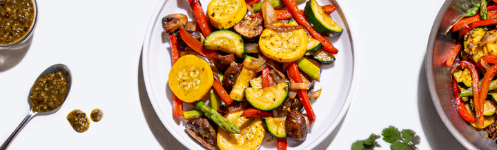 Place all vegetables in a bowl and lightly season with Kevin’s All-Purpose Seasoning. Add Kevin’s Cilantro Lime Sauce and toss vegetables to coat with sauce.