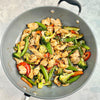 As vegetables are heating up, in another pan, cook Kevin's Teriyaki Chicken according to package directions.