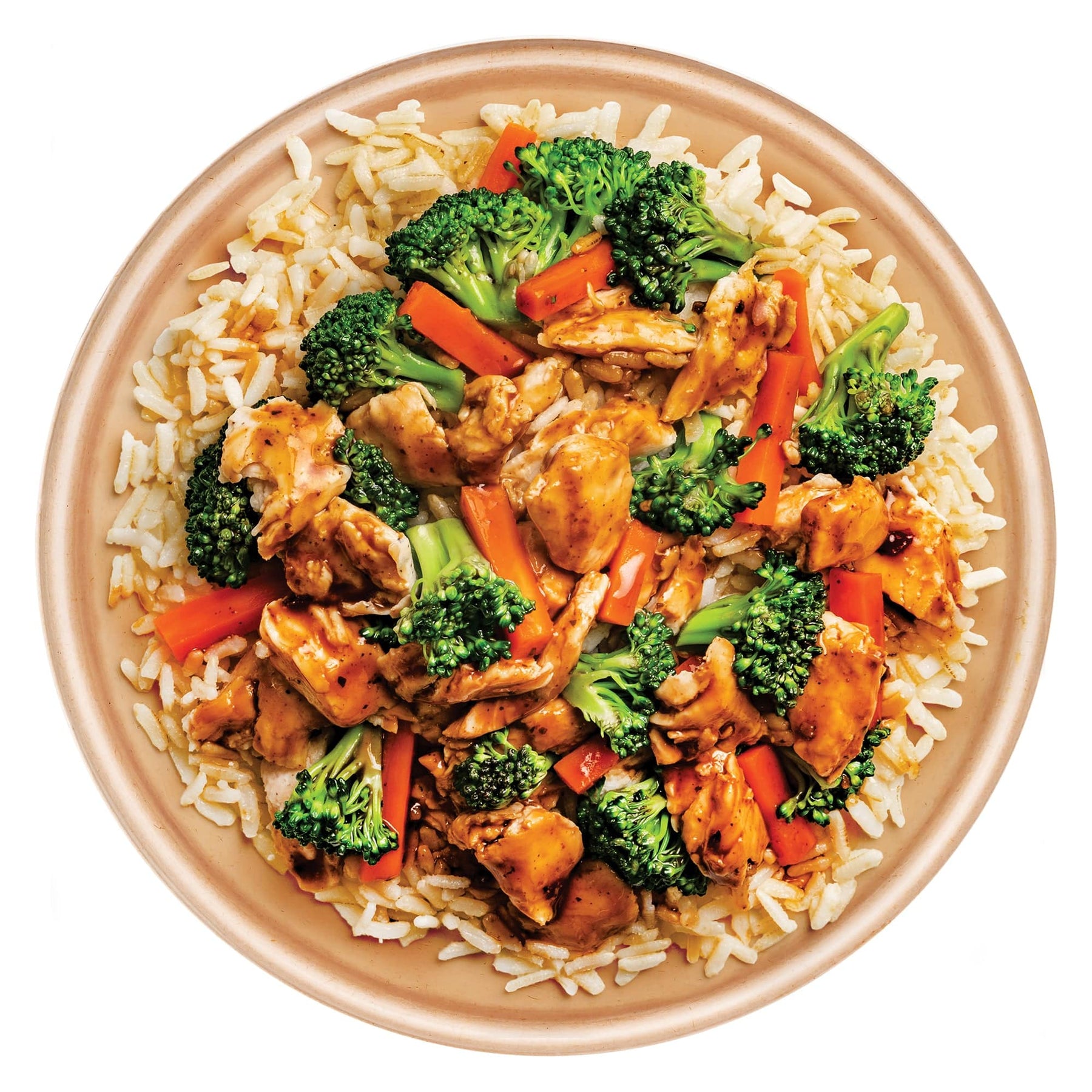 Tender chicken breast strips in a soy-free Bulgogi-style sauce paired with broccoli, carrots, and brown rice.